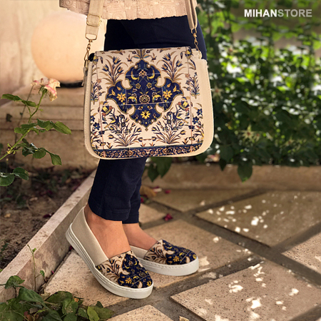 فرهنگ و تمدن هر کشوری نشان دهنده اصالت و قدمت آن است. امروزه مردم کشورهای غربی با چنگ و دندان پاسدار فرهنگ نه چندان قدمتدار خود هستند آنجا که ایران ما دارنده فرهنگی عمیق پر از نقش و نگار و خصوصیات اخلاقی ویژه است. این ست کیف و کفش علاوه بر جادار بودن کیف، و کفش فوق العاده راحت دارای نقش و نگاری است که برگرفته از فرهنگ ایرانی است. زیبایی این طرح نه تنها در ایران بلکه در تمام دنیا مورد پسند همگان است و زیبایی و جذابیت خاصی دارد که تحسین همگان را بر می انگیزد. کفش این ست در سایزبندی 37 الی 40 عرضه شده است که هنگام تکمیل فرم سفارش می توانید سایز مورد نظر را انتخاب کنید.